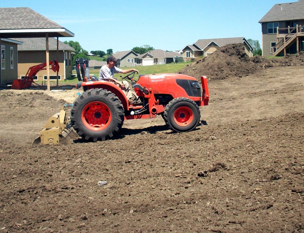 First we leveled out all the dirt around a pond, then added seed fertilizer and straw for a beautiful green grass.